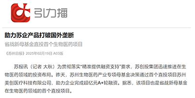省战新母基金直投首个生物医药项目