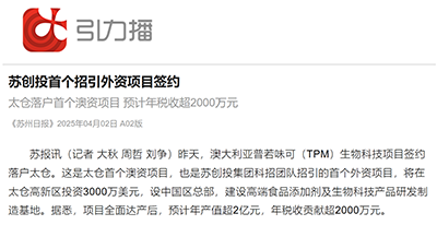 太仓落户首个澳资项目,预计年税收超2000万元