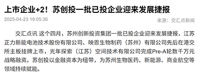 苏创投以金融资本为纽带,为苏州生物医药、新能源、商业航空等领域持续赋能。